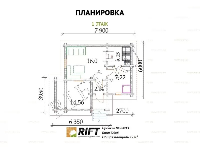 Площадь: 35 м2