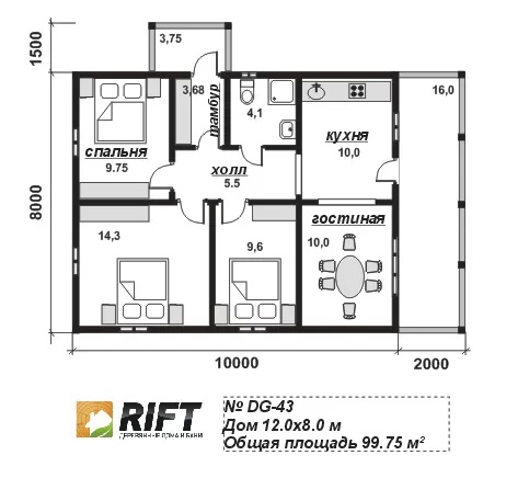 Приглашаем вас ознакомиться с новым проектом от компании Дом Рифт – Каркасный дом DG43. Этот уникальный дом представляет собой идеальное сочетание стиля и удобства. Это можно заметить в правильной планировке дома и его внешнем виде, благодаря добавлению крыльца и беседок. Площадь дома составляет 99 квадратных метров, предоставляя достаточно места для комфортной жизни. Мы используем передовые технологии строительства, включая Каркас. Это позволяет нам гарантировать вам долгое проживание здесь, без потребности в ремонте или реконструкции. Мы используем материалы, такие как [Материал] только от проверенных поставщиков, качество которых подтверждалось много лет. Этот проект имеет 1 этаж этажей и предлагает планировку, которая удобно распределяет разные зоны дома. Просторная большая гостиная размером 12×8 наполняется светом, позволяя наслаждаться времяпровождением с семьей, а уютная кухня станет сердцем вашего дома, где будет царить уют. Одним из главных преимуществ этого проекта является его короткий срок реализации – всего 30 дней дней. Это позволяет вам быстро осуществить свою мечту о собственном доме, минимизируя время ожидания и затраты на аренду или временное жилье. Сотрудничество с компанией Дом Рифт также выгодно благодаря доступным ценам на проекты. Цена дома составляет 3130875. Чтобы воплотить мечту в реальность, начиная всего с 50 094 вы можете купить дом в кредит. Приглядитесь к данному проекту dg43 и возможно именно он станет тем домом, о котором вы всегда мечтали. Стройте своё будущее с нами и наслаждайтесь комфортом и качеством жизни в вашем новом доме от Дом Рифт.