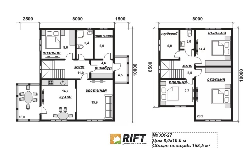 Силовой каркас | Силовой каркас первого этажа и фронтоны выполняются из качественной доски 150х40 мм. C шагом 590 мм. | |
