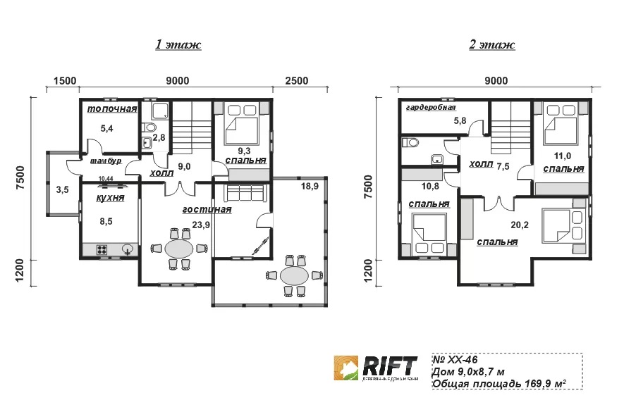 Пол | Черновой пол выполняется из доски 25 мм, чистовой пол выполняется из OSB-3 толщиной 18 мм | |