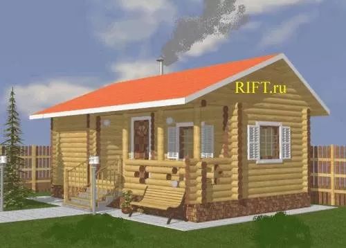 Первый проект, который мы рассмотрим, – это одноэтажная баня из бревна с уютной террасой. Такая баня будет идеальным местом для проведения время в компании друзей или близких, а также для собственного отдыха после трудового дня.
