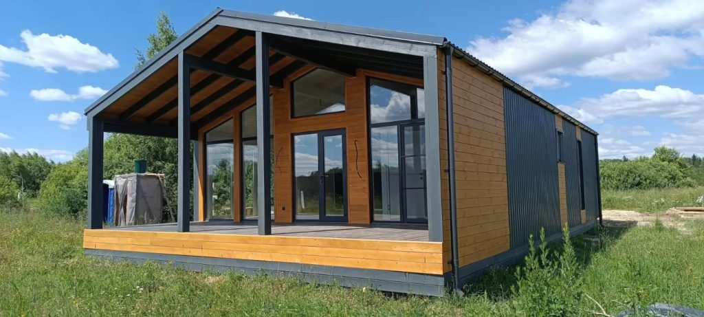 Также отметим простую отделку, которая не требует больших затрат. Обычно внешние и внутренние стены обшиваются гипсокартоном и панелями с желаемой текстурой, не требуя штукатурить стены, устанавливать обрешётки или металлические профили.