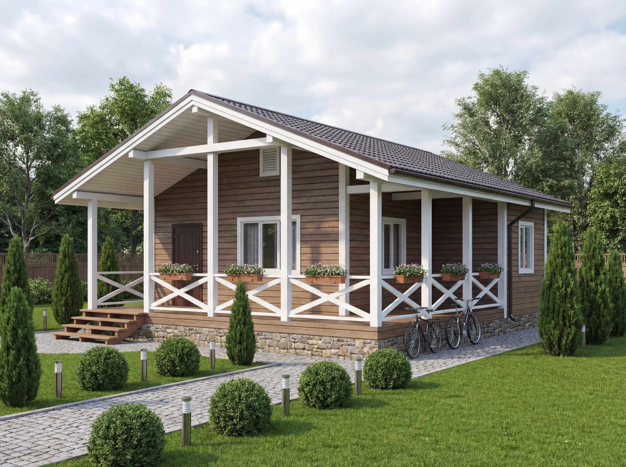 | Материалы для каркаса и ограждений | Высокое | Деревянный брус дешевле клеёного; утеплитель, сайдинг и отделка существенно меняют цену. |